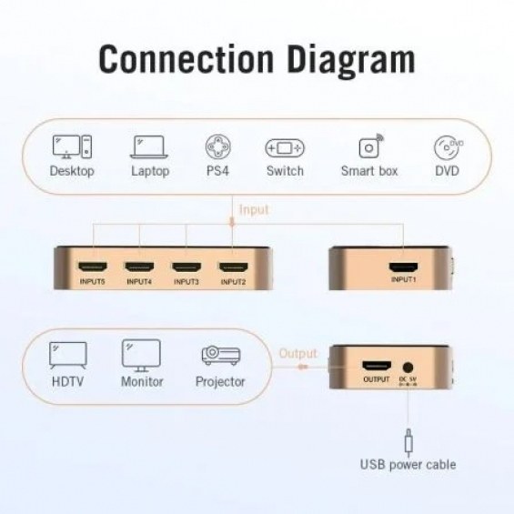 • Conexión: 5 HDMI A Hembra, DC Power port