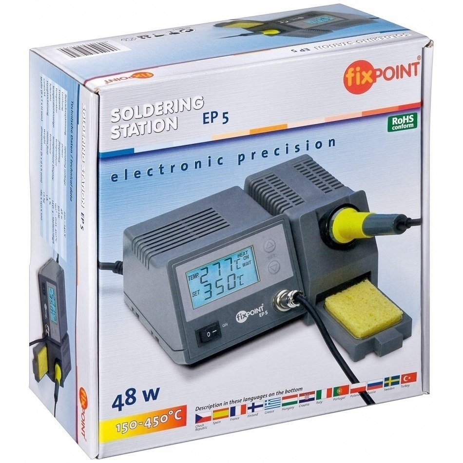 Estació n de soldadura digital con dé bito-y el í ndice de temperatura real NEW hasta el momento junto con el azul retroiluminació n de la pantalla LED caracterí sticas: -Gran pantalla LCD (60X30 mm) -Poco tiempo para calentar la punta 15 min. para 330 ° C regulable en temperatura con las teclas UP / DOWN por arriba-abajo el botó n -cambio rá pido y fá cil de la punta spongeholder retrá ctil Datos té cnicos: potencia del soldador: ca. 48 W tensió n de soldador: 24V Frecuencia: 50 Hz Rango de temperatura: 150-450 ° C display: LCD pantalla tolerancia: + / - 5% fusible principal: 1A