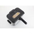 La freidora inoxidable FR226 tiene una capacidad de un litro de aceite y tiene tapa extraíble con filtro y visor
