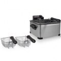 ¡La freidora Tristar FR-6949 es perfecta si deseas freír distintos alimentos al mismo tiempo o si tienes una gran familia! La freidora tiene una capacidad total de cinco litros, nada menos. Además, puedes utilizar las cestas pequeñas para freír aperitivos y patatas al mismo tiempo o preparar una ración grande de patatas utilizando la cesta grande. Además, la freidora cuenta con un recipiente esmaltado extraíble y un práctico visor.