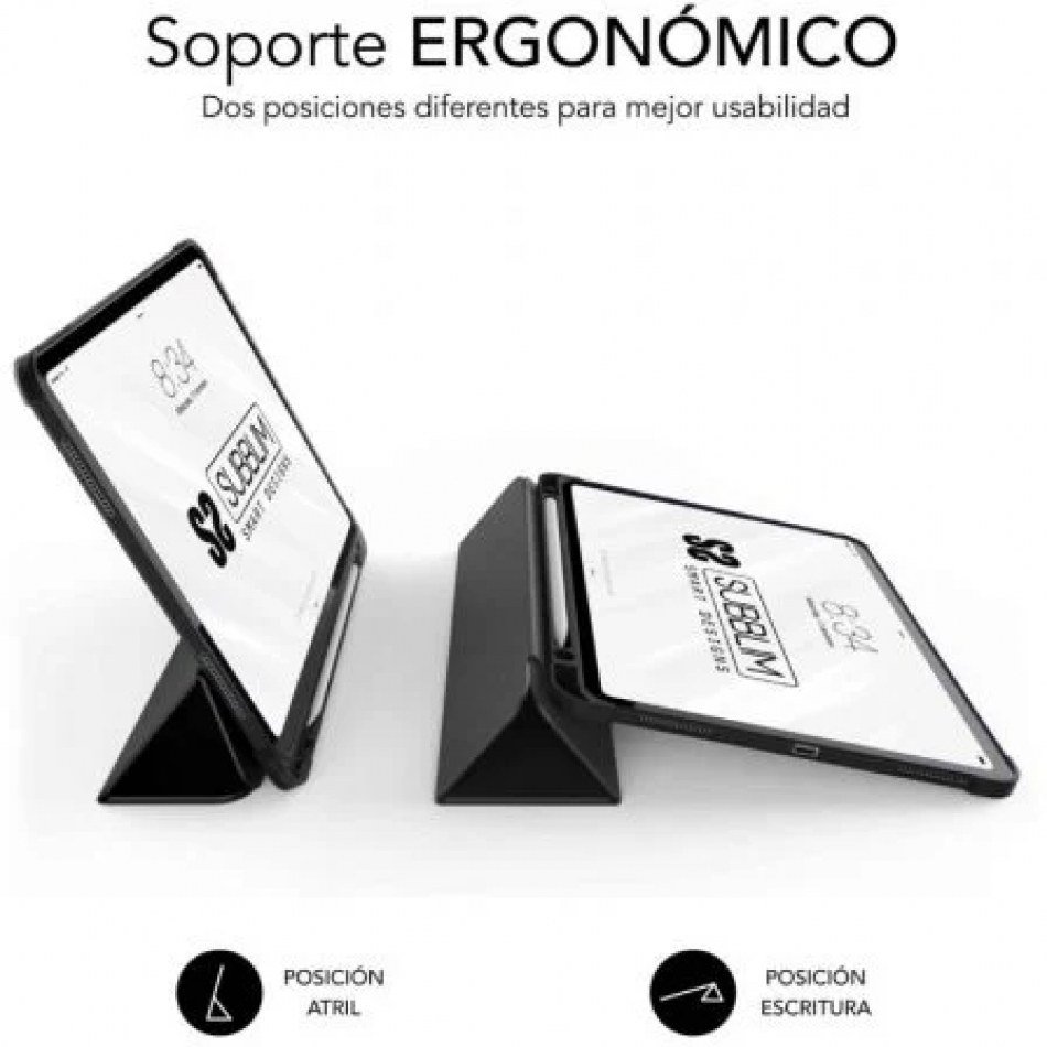La funda cuenta con una función atril que te permite ajustar el ángulo de visión de tu Tablet en dos posiciones diferentes, brindando comodidad y versatilidad al ver contenido o trabajar en él