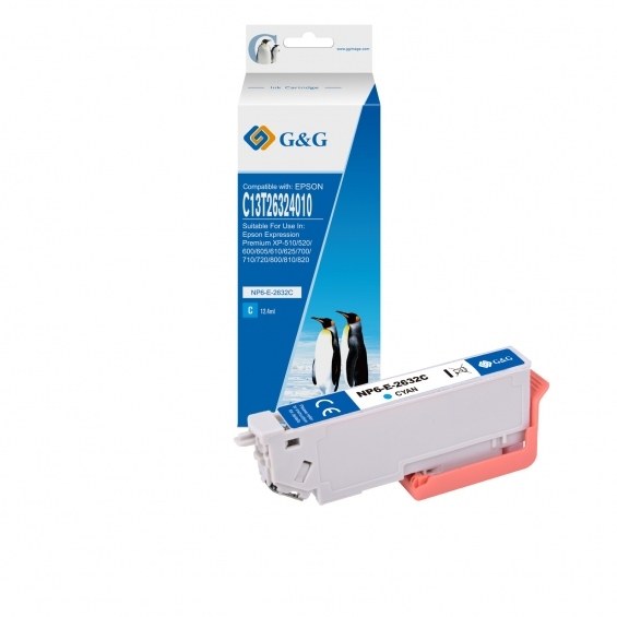 G&G Epson T2632/T2612 (26XL) Cyan Cartucho de Tinta Generico - Reemplaza C13T26324012/C13T26124012
