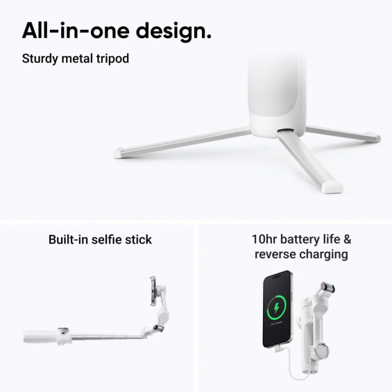 Este gimbal redefine la grabación móvil gracias a su libertad de seguimiento de 360 grados , permitiendo capturas panorámicas sin límites ni fronteras. Además, incorpora un foco con tres niveles de brillo y temperatura de color para grabaciones nocturnas y es totalmente compatible con el Insta360 Mic Air para un sonido nítido. Su software inteligente ofrece composición y edición por IA, facilitando que incluso los principiantes logren contenidos profesionales al comprar Insta360 Flow 2 .