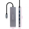 Hub USB-C a 3xUSB3.0/H + 1xUSB-C/H Aluminio 10 cm, Gris