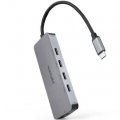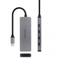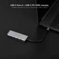 Hub USB-C macho a 4 x USB-C hembra + USB-C PD 100W, Aluminio 10 cm, Gris