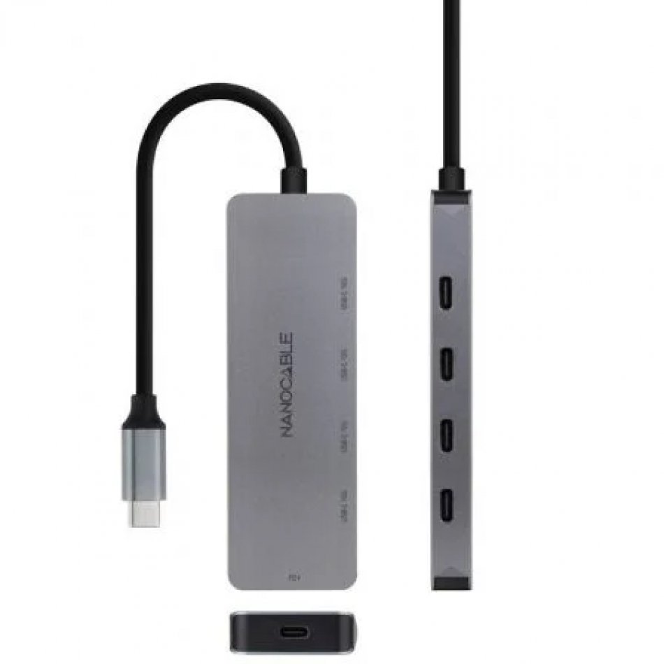 Hub USB Tipo-C Nanocable 10.16.4505/ 4xUSB Tipo-C/ 1xUSB Tipo-C DP/ Gris