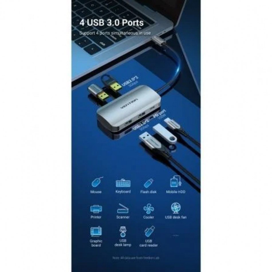 Hub USB Tipo-C Vention TNBHB/ 4xUSB/ 1xUSB Tipo-C PD