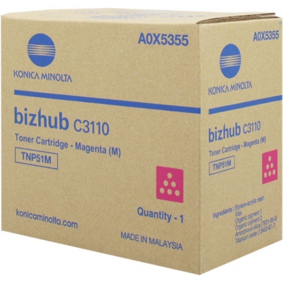 Cartucho de toner original Konica Minolta TNP51 (TNP51M/A0X5355) de alta calidad.Adecuado para uso en las siguientes impresoras:Konica Minolta Bizhub C3110Rendimiento: 5.000 Páginas