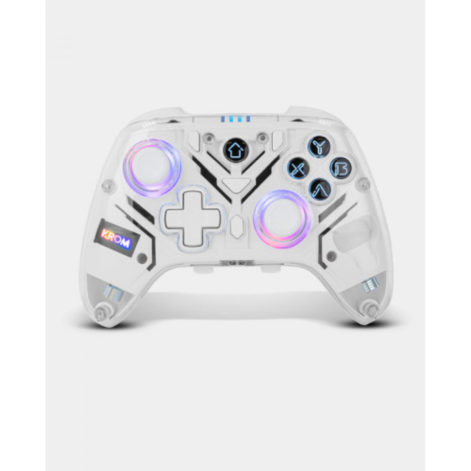 KROM KRYSTAL TRANSPARENTE , WIRELES BLUETOOTH O CABLE , COMPATIBLE PC, SWITCH, SWITCH2 , ANDROID E IOS
