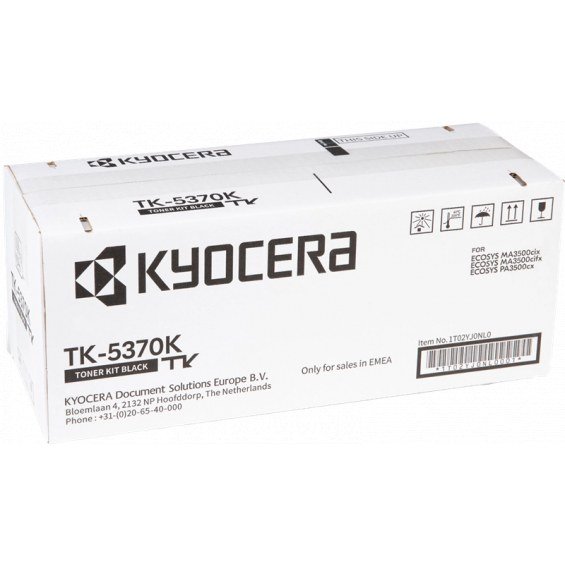 Cartucho de toner original Kyocera TK5370 (1T02YJ0NL0/TK5370K) de alta calidad. Adecuado para uso en las siguientes impresoras: Kyocera ECOSYS MA3500cifx Kyocera ECOSYS MA3500cix Kyocera ECOSYS PA3500cx Rendimiento: 7.000 Páginas