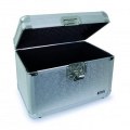 Maletín de transporte plancha desmontable para 16 micrófonos y accesorios. En madera contrachapada revestida. Tapa con cierre hermético, asa de transporte y cantoneras metálicas de protección. Construcción robusta para transporte y protección de micrófonos y materiales diversos. Acabado aluminio.