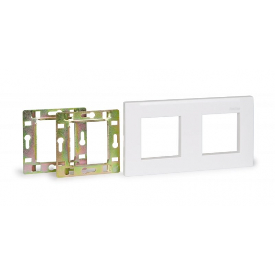 Marco y 2 chasis para instalación en 2 cajas estándar europeas. 2 ventanas para 2 paneles de conexión.