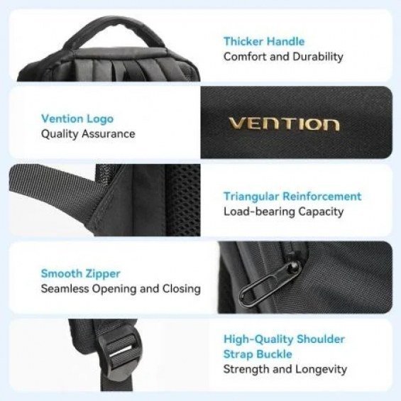 Mochila Vention KRQB0 para Portátiles hasta 15.6"/ 20L/ Impermeable/ Negra