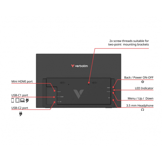Monitor Portátil Verbatim Non-Touch Light 15.6" – Full HD, USB-C Plug & Play, Diseño Ultradelgado