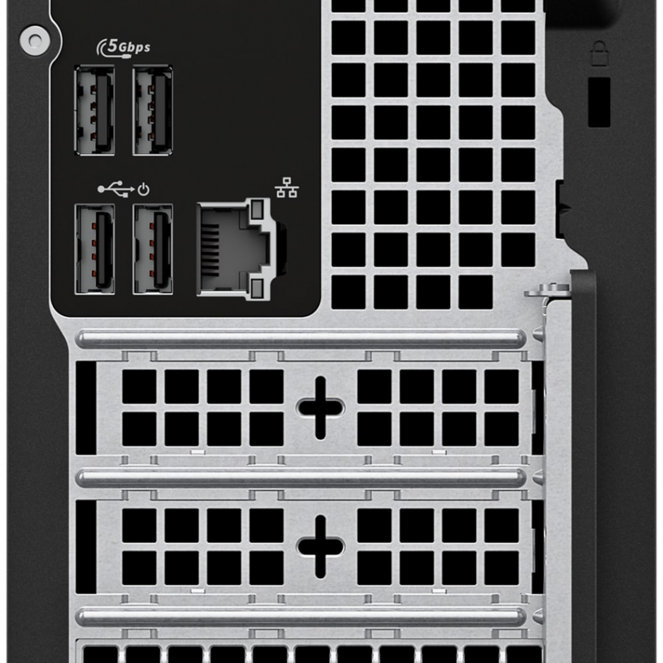Su diseño en formato escritorio delgado y su conectividad avanzada con puertos USB-C, HDMI, DisplayPort y lector de tarjetas SD lo convierten en una opción ideal tanto para oficinas como para entornos profesionales exigentes. Además, incluye características de seguridad empresarial como TPM 2.0 y compatibilidad con candado Kensington.