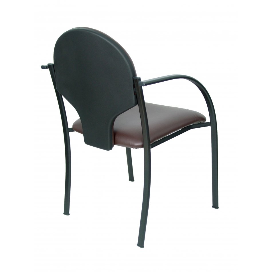 Con un peso máximo de 100 Kg , la silla Hellín cuenta con brazos fijos que proporcionan un soporte adicional, mientras que su respaldo fijo asegura una postura adecuada durante el tiempo de uso. Su acabado en similpiel en un elegante marrón oscuro no solo aporta un toque estético, sino que también facilita la limpieza y el mantenimiento.
