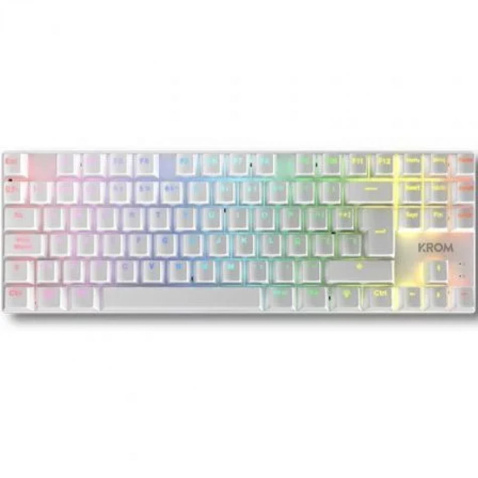 El teclado mecánico Krom Klass destaca no solo por su estética blanca que hace resaltar su iluminación RGB, sino también por contar con 65 teclas anti-ghosting. Este teclado gaming mecánico de Krom, cuenta con teclas de perfil alto, incorpora 12 teclas multimedia, que te permiten acceder a distintas funciones, así como tecla de bloqueo Windows.