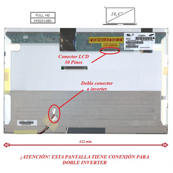 Pantalla para portátil LCD 18.4 30 pines Full HD doble lampara"