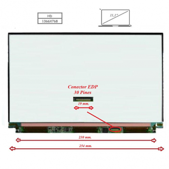 Pantalla para portátil LED 11.1 Slim 30 Pines 1366x768"