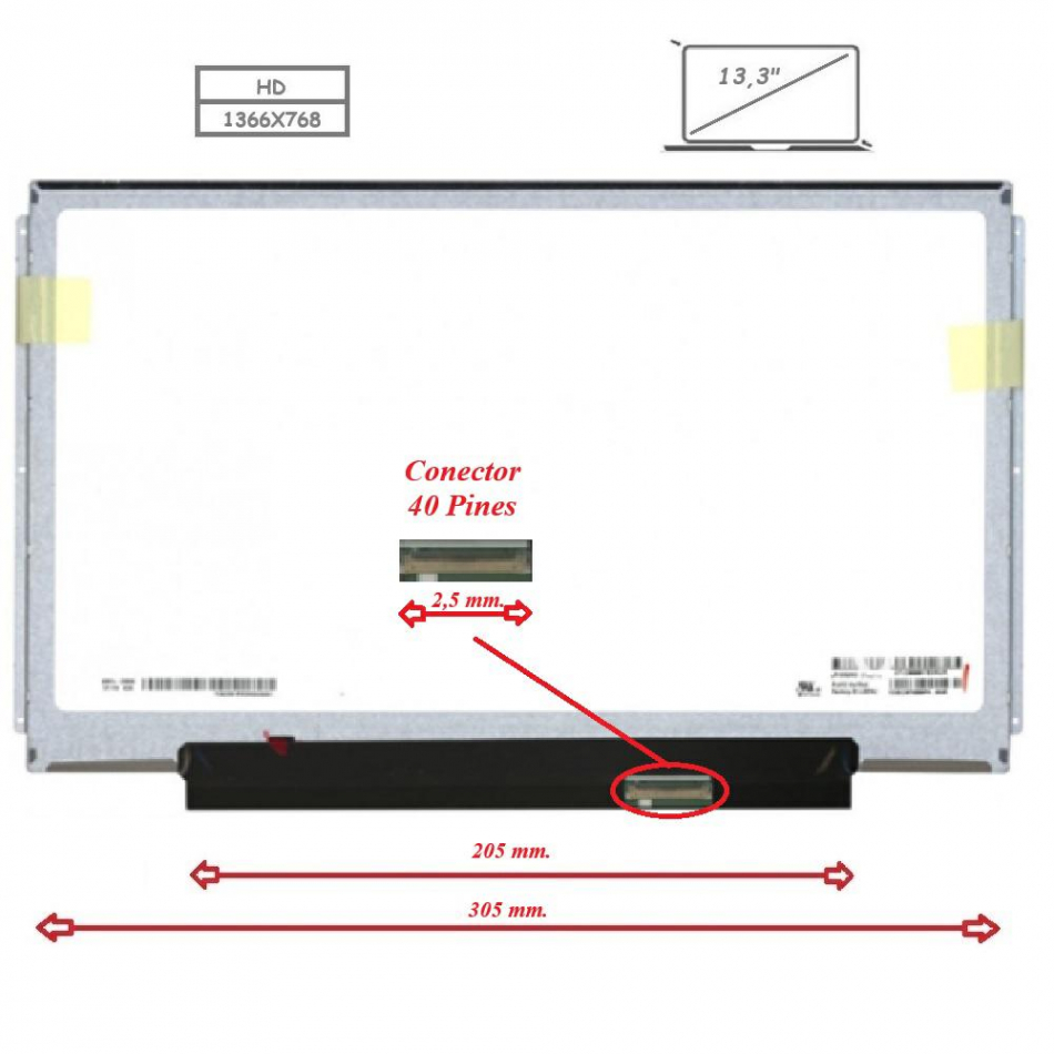 Pantalla para portátil LED 13.3 Slim 40 Pines Brackets alargados"