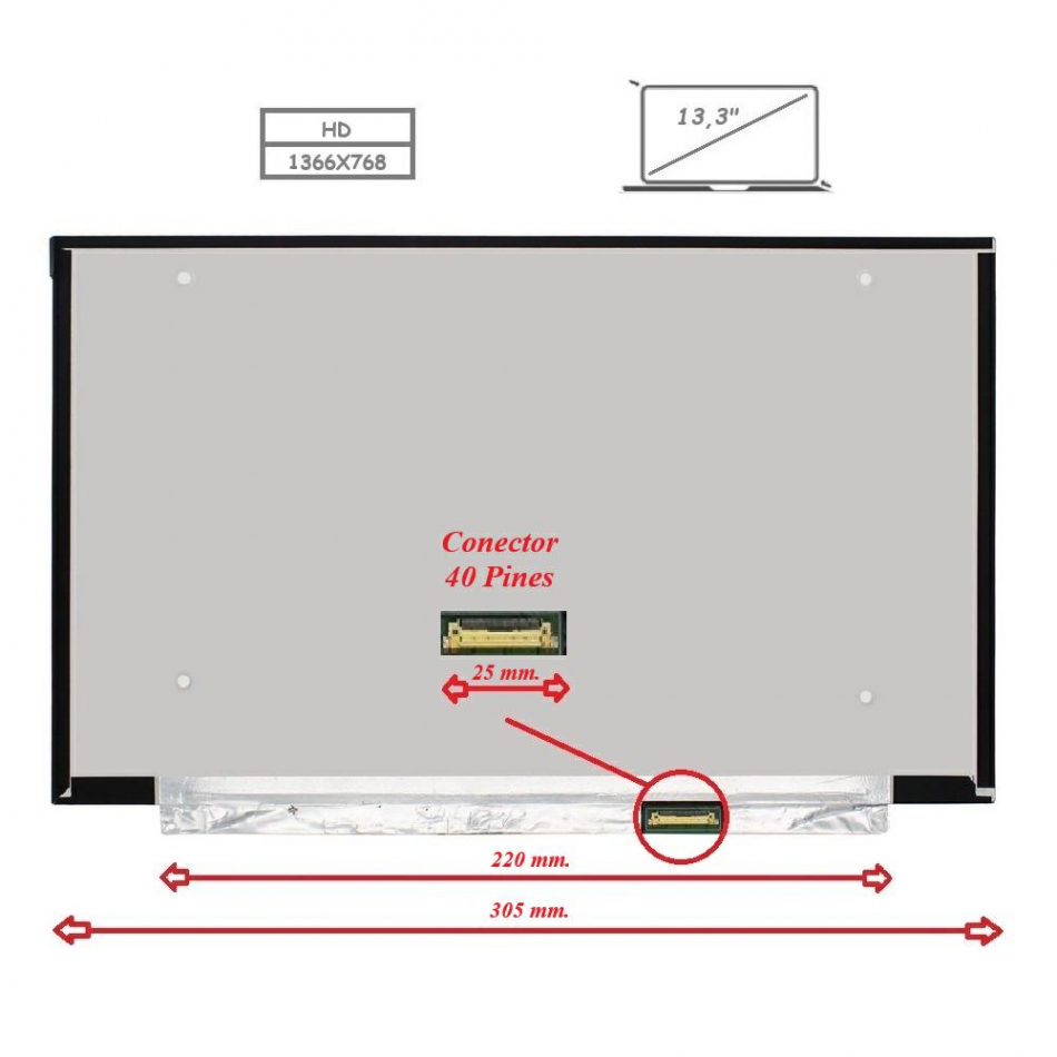 Pantalla para portátil LED 13.3 Slim 40 pines WXGA sin brackets\1