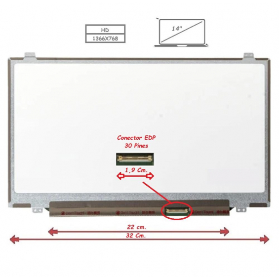 Pantalla para portátil LED 14 Slim 30 Pines 1336x768 Ancho 32cm"