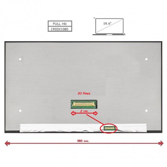 Pantalla para portátil LED 15.6 Slim 30 Pines Full HD Sin Brackets Ancho 350mm Rectangular sin reborde\1