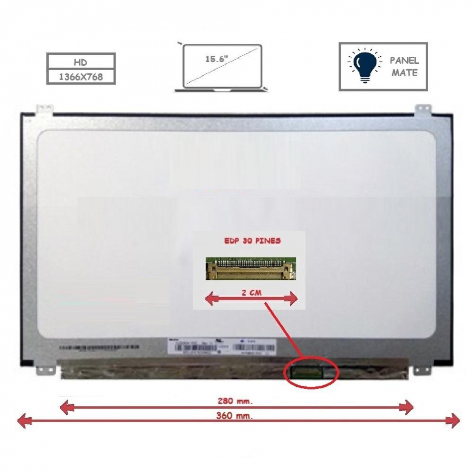Pantalla para portátil LED 15.6 Slim 30 Pines WXGA Ancho 360mm Mate"