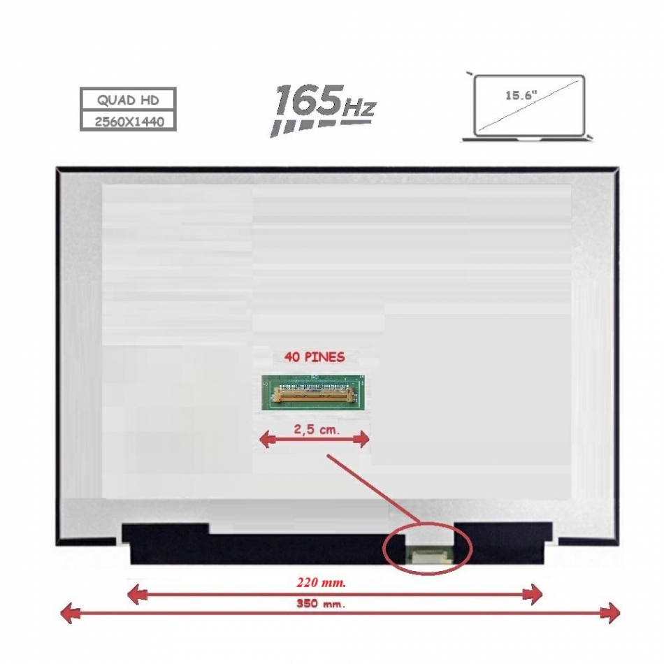 Pantalla para portátil LED 15.6\" Slim 40 Pines QHD Sin Brackets 165Hz
