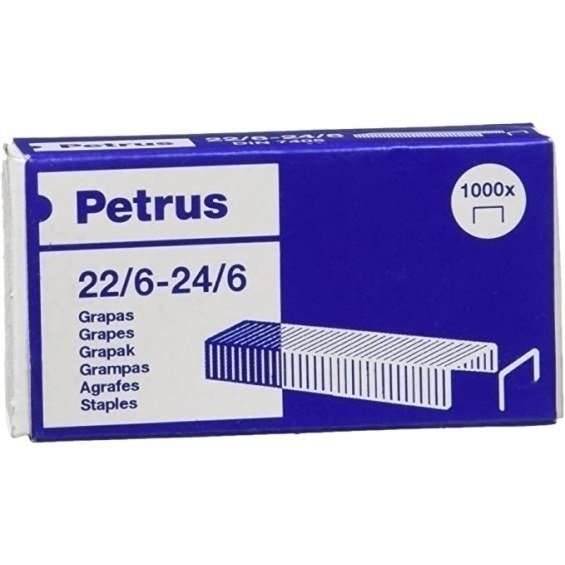 Petrus Grapas 22/6 Galvanizadas - Hasta 30 Hojas - Caja de 1000 Grapas - Patilla de 6mm