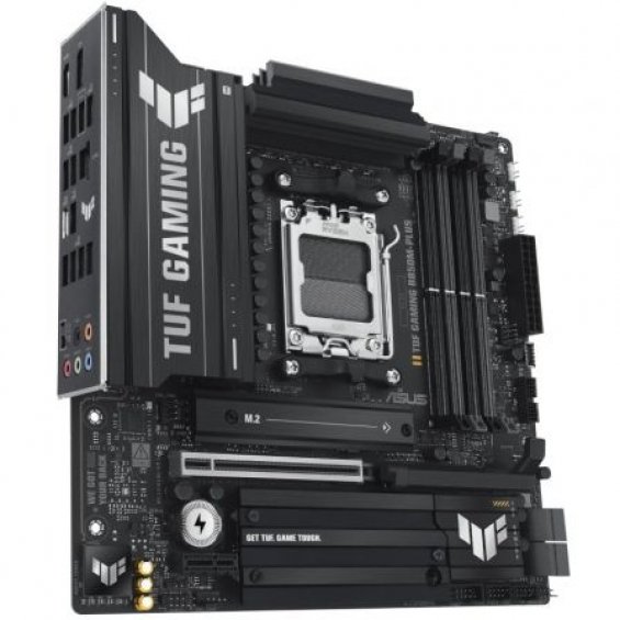 ASUS TUF GAMING B850M-PLUS toma todos los elementos esenciales de los últimos procesadores AMD Ryzen™ y los combina con funciones listas para jugar y una durabilidad probada. Diseñada con componentes de grado militar, una solución de alimentación mejorada y un completo sistema de refrigeración, esta placa base supera las expectativas con un rendimiento sólido como una roca y estable para juegos maratonianos. Las placas base TUF GAMING también se someten a rigurosas pruebas de resistencia para garantizar que pueden soportar condiciones en las que otras podrían fallar. Esta plataforma ofrece la potencia y la conectividad que exigen las aplicaciones informáticas avanzadas de IA.