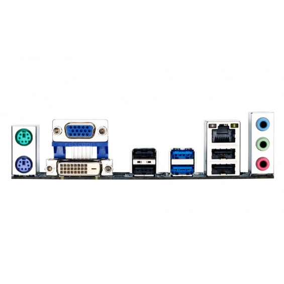 Conectividad trasera: PS/2 teclado/ratón, D-Sub, DVI-D, 2x USB 3.0, 4x USB 2.0, RJ-45, 3x audio jack