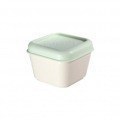 Recipiente para alimentos cuadrado color blanco crudo con tapa verde. Apto para calentar en microondas (máx. 70ºC) con la tapa abierta para liberar el vapor. Apto para congelador (hasta -20ºC). Apto para lavar en ellavavajillas (máx. 70ºC). Las tapas recipientes son fácilmente apilables entre sí. Acabado exterior mate, para facilitar la sujeción. Interior con esquinas redondeadas y acabado brillante para favorecer su limpieza. Material: plástico libre de bisfenol A (BPA free). Medidas: 10 x 10 x)m. Capacidad: 0,33 litros.