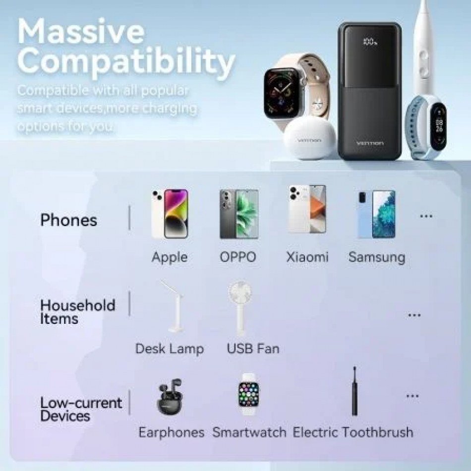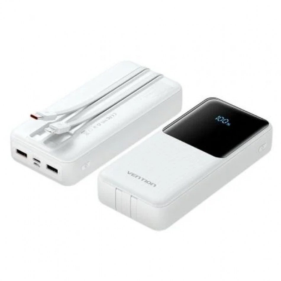 Powerbank 20000mAh Vention FHPW0/ 22.5W/ Blanca/ Incluye Cable USB TIpo-C y Lightning