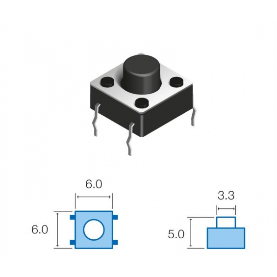Pulsador Tacto 6x6mm Alto 5,0mm 4patas TACT-65N-F