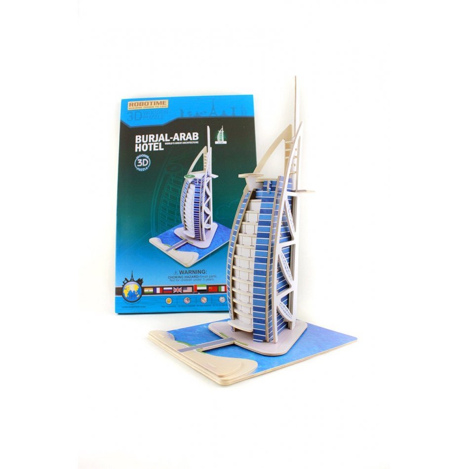 Puzzle 3D de madera de la Torre de Dubái – recrea el icónico hotel de 7 estrellas Incluye 56 piezas – montaje entretenido y desafiante Dimensiones del modelo armado: 175 x 210 x 344 mm – gran tamaño para exhibición Peso de 776 gramos – estructura sólida y resistente Ideal para fans de la arquitectura y coleccionistas de puzzles