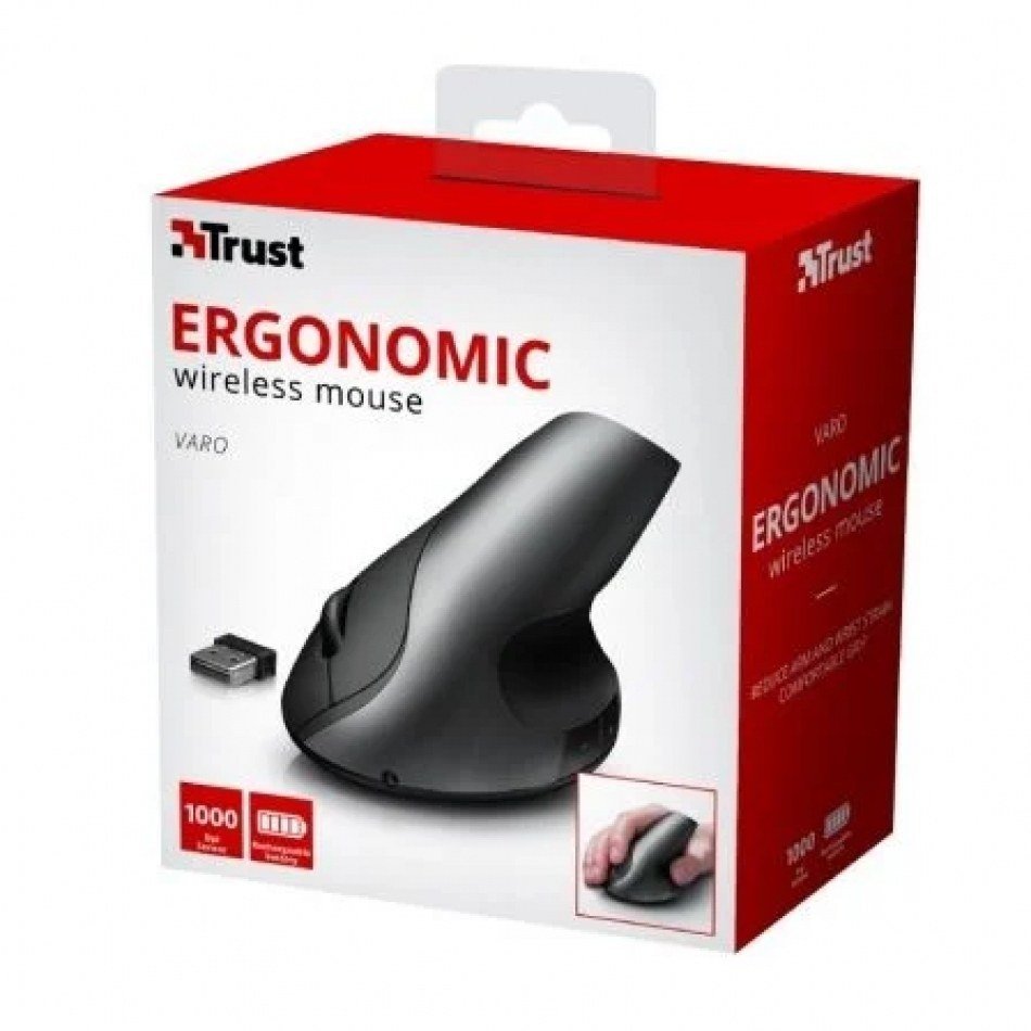 RATÓN INALÁMBRICO ERGONÓMICO TRUST VARO - DISEÑO VERTICAL - BATERÍA RECARGABLE - 2 BOTONES - 1000PPP - MICRORRECEPTOR USB