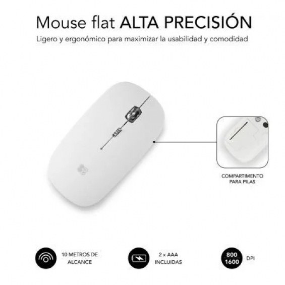 Ratón Inalámbrico por Bluetooth Subblim Flat/ Hasta 1600 DPI/ Blanco