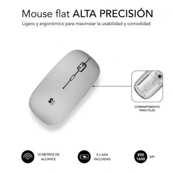 Ratón inalambrico Bluetooth 3,0 compatible con dispositivos Apple, Android y Windows. Diseño Slim con solo 2 mm de grosor, elegante y compacto. Sensor Óptico con precisión láser de 1600 dpi. Dispone de 4 botones. Incluye pilas y modo ahorro de energía