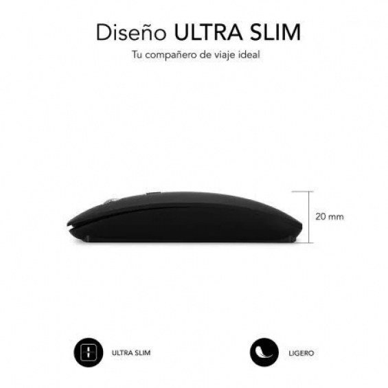 Ratón inalambrico Bluetooth 3,0 compatible con dispositivos Apple, Android y Windows. Diseño Slim con solo 2 mm de grosor, elegante y compacto. Sensor Óptico con precisión láser de 1600 dpi. Dispone de 4 botones. Incluye pilas y modo ahorro de energía