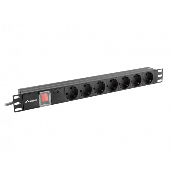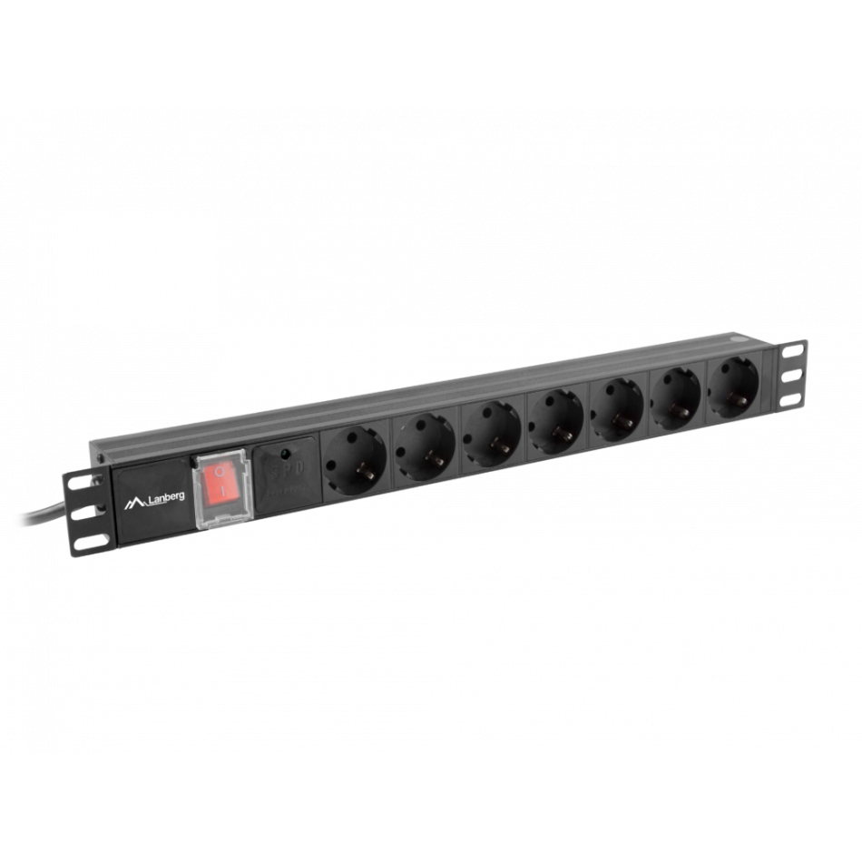 Regleta PDU Lanberg PDU-07F-0200 - 7 Tomas Schuko | 16A | Rack 1U | Negro