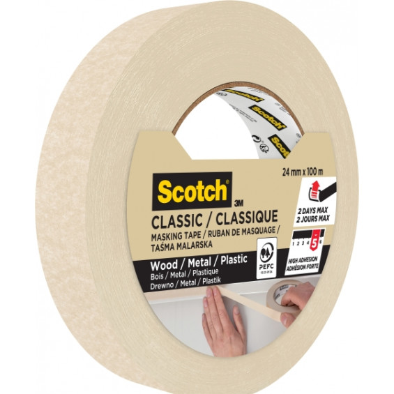 Scotch Classic Cinta de Enmascarar - 24mm x 100m - 70% PEFC - Color Blanco