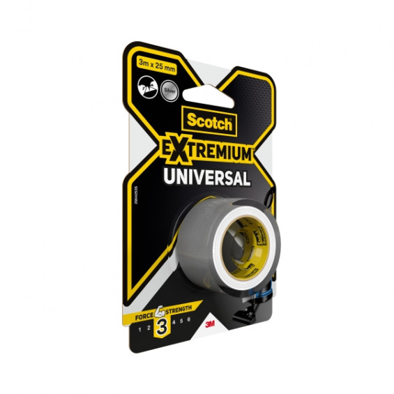La cinta americana Scotch® Extremium™ UNIVERSAL es fuerte, duradera, conformable y flexible, y se adhiere al instante a la mayoría de superficies. Es fácil de cortar con la mano y se puede escribir sobre ella con prácticamente cualquier rotulador, lo que la hace ideal para una amplia variedad de proyectos y reparaciones. Cuando necesites precisión y resistencia, confía en la cinta americana Scotch® Extremium™ UNIVERSAL. Esta cinta multiuso está diseñada específicamente para sujetar y reparar con rapidez, lo que la convierte en ideal para una amplia variedad de proyectos y reparaciones, ya sea en artesanía, agrupado de objetos, para reforzar tapas de libros o marcar herramientas. Con un papel protector reforzado duradero, conformable y flexible, esta cinta se adhiere con fiabilidad a la mayoría de superficies, incluido plástico, papel, madera y metal. Se puede escribir sobre ella con prácticamente cualquier rotulador y es fácil de cortar con la mano, lo que permite prescindir de tijeras. Características: -Cinta americana de uso general -Variedad de tamaños y longitudes -Adhesión estándar para una cinta americana de Nivel B -Se puede escribir sobre ella con prácticamente cualquier rotulador -Fácil de cortar a mano -También disponible en color blanco, plata y negro Especificaciones: -Color: Plateado -Contenido del embalaje: 1 Rollo/Paquete -Dispensador: No -Tipo de adhesivo: Caucho -Propiedades: Permanente -Ambiente de uso: Interior/Exterior Dimensiones: -Ancho: 25 mm -Espesor: 0.19 mm -Largo: 3 m