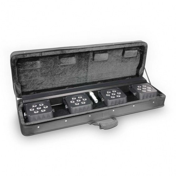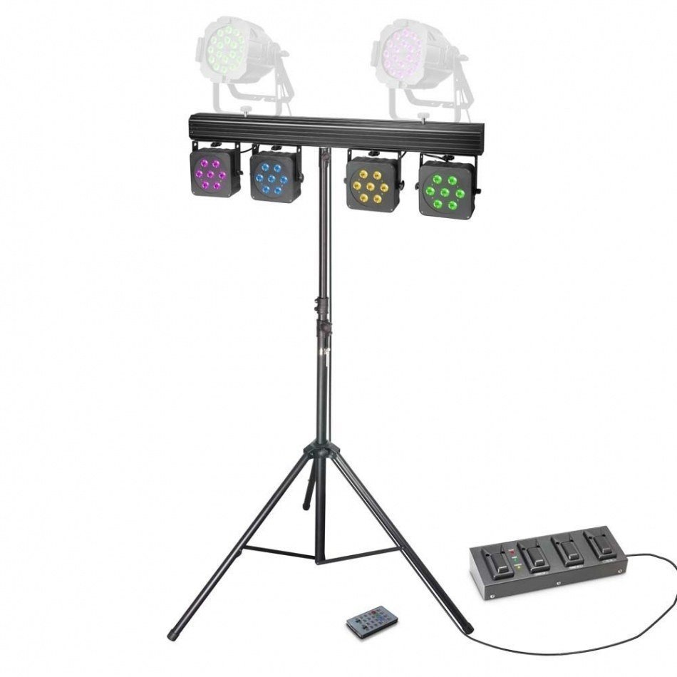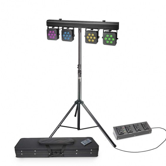 Set de proyectores LED quadro colores 28 x 8 W con estuche de transporte, pedal y soporte