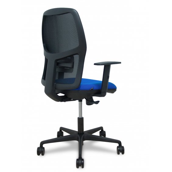 PIQUERAS Y CRESPO Modelo Alfera - Silla de oficina ergonómica con mecanismo sincro, brazos regulables y ajustable en altura - Respaldo de malla transpirable en color negro y asiento tapizados en tejido BALI color azul.