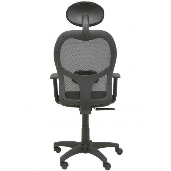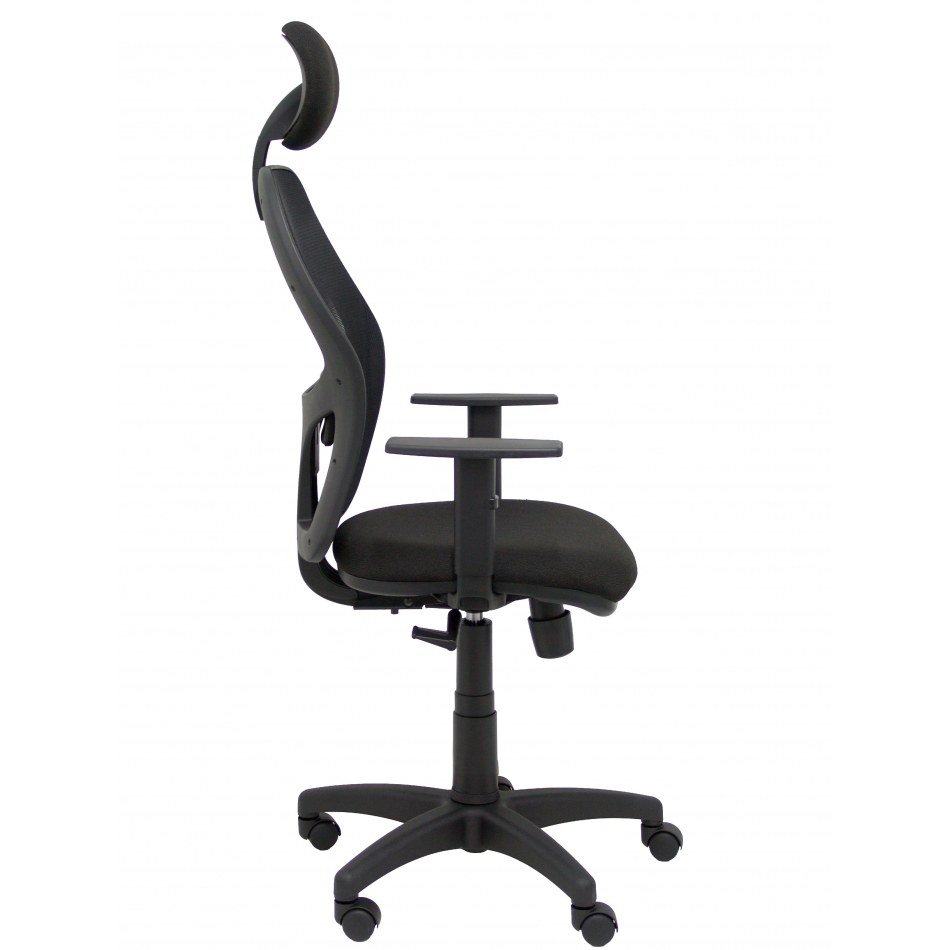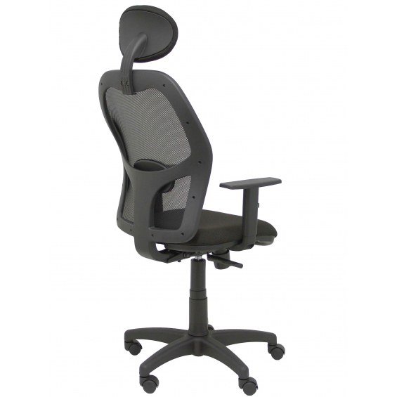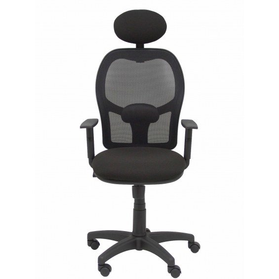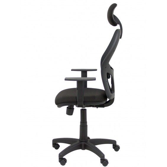 PIQUERAS Y CRESPO Modelo Alocén - Silla de oficina ergonómica con mecanismo sincro, brazos regulables y ajustable en altura - Respaldo de malla transpirable en color negro con cabecero fijo y asiento tapizados en tejido BALI color negro.