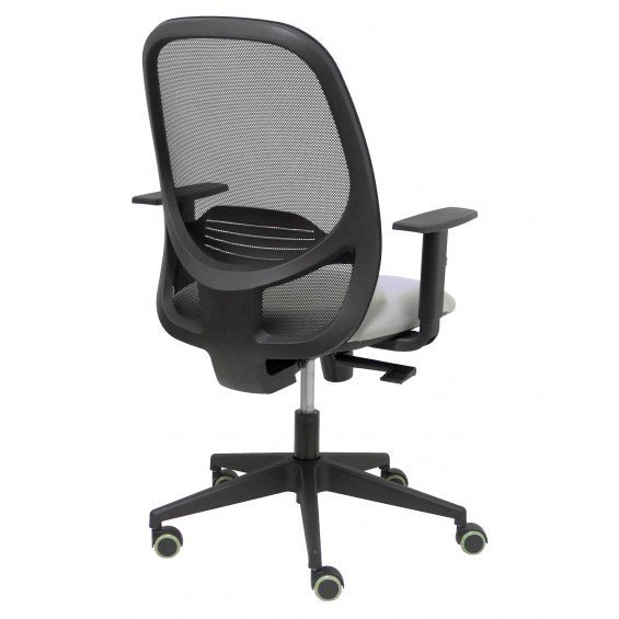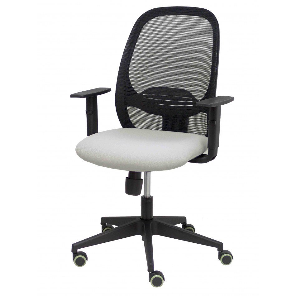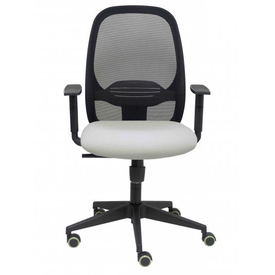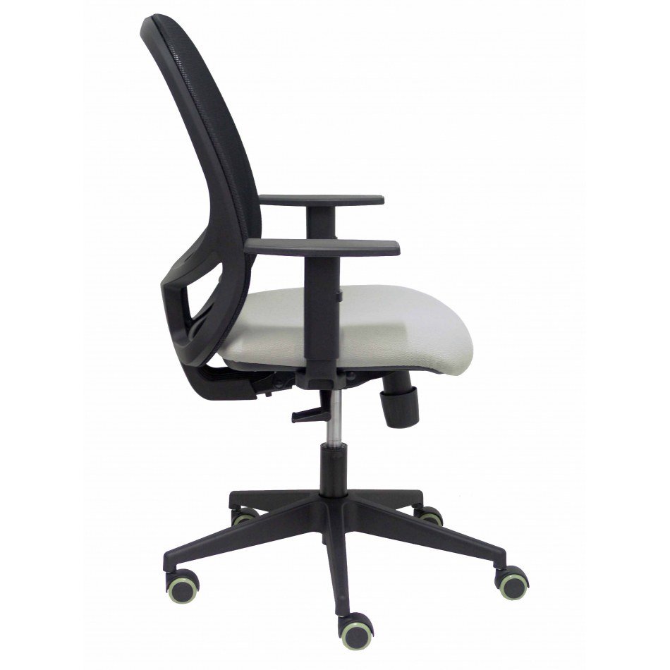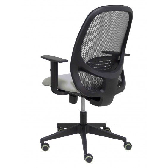 Silla Cilanco negra malla negra asiento bali gris claro brazo regulable.