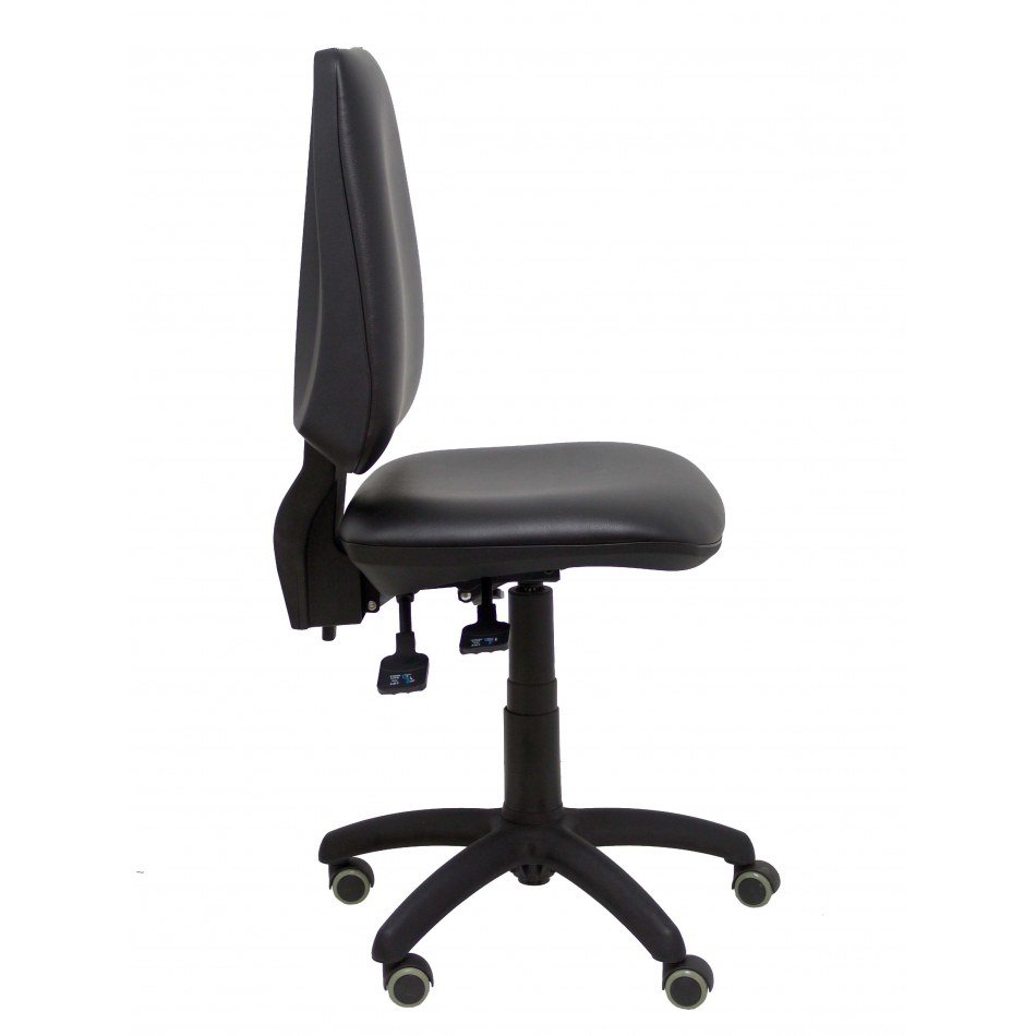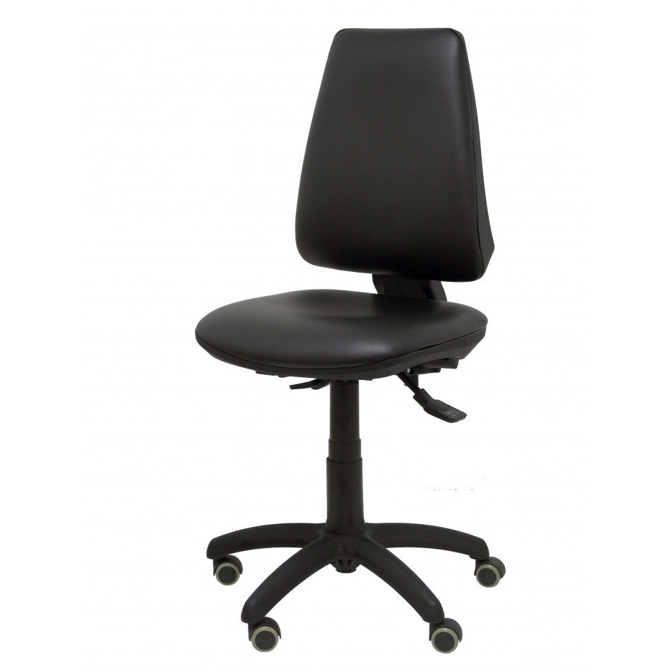 PIQUERAS Y CRESPO Modelo Elche S - Silla de oficina ergonómica con mecanismo asincro, regulable en altura y ruedas de parqué. Asiento y respaldo tapizados en similpiel color negro.
