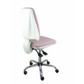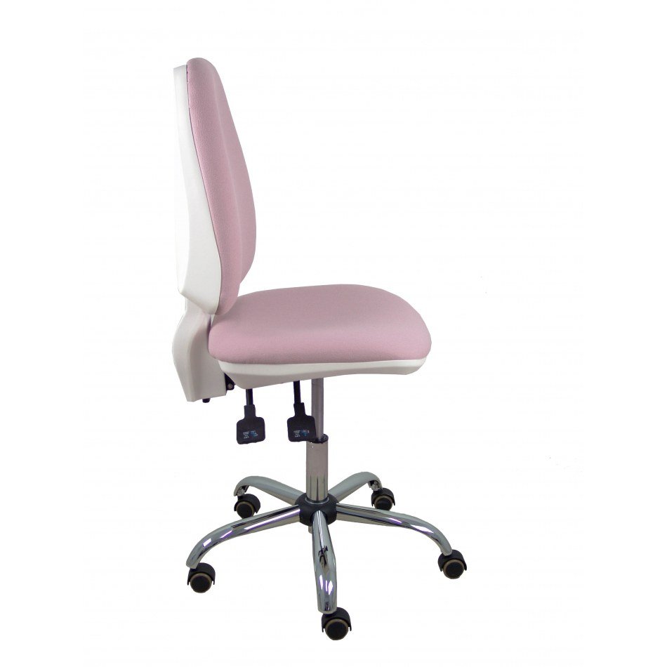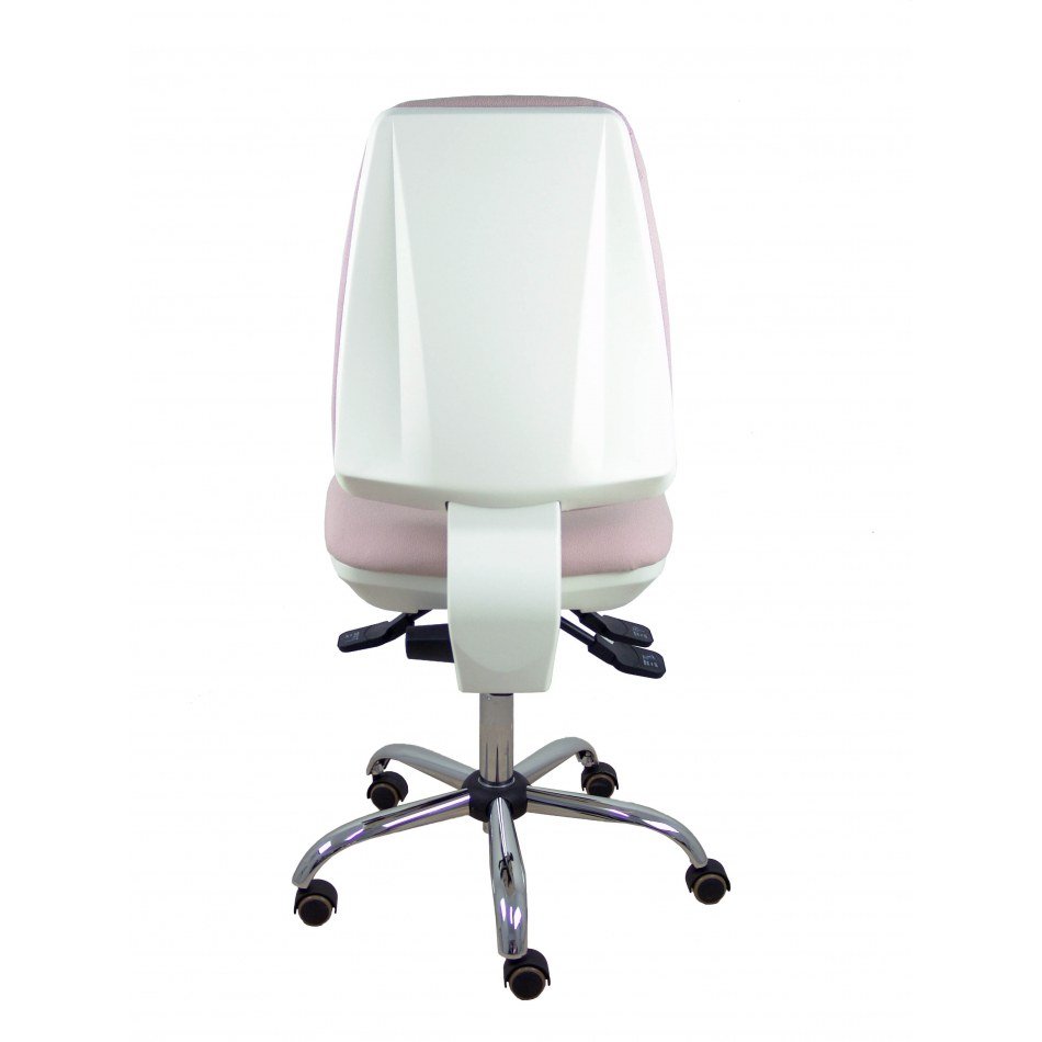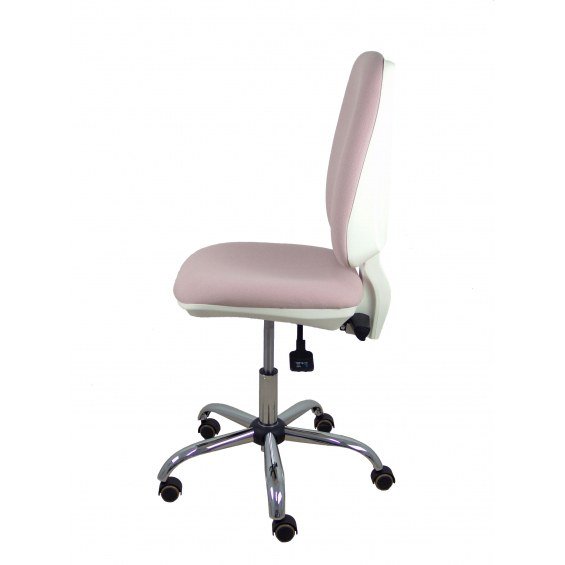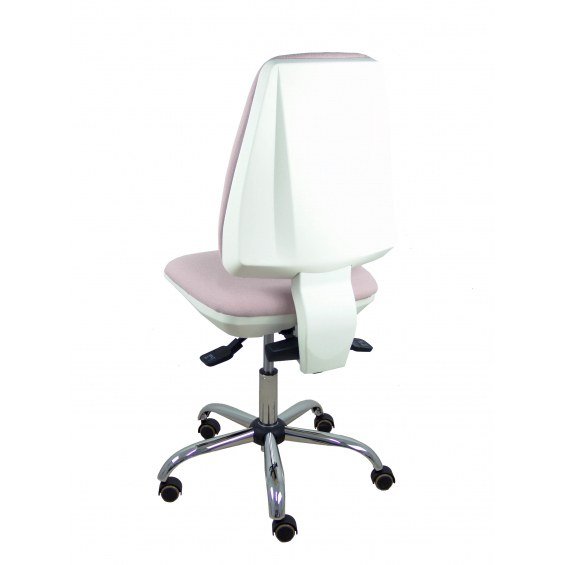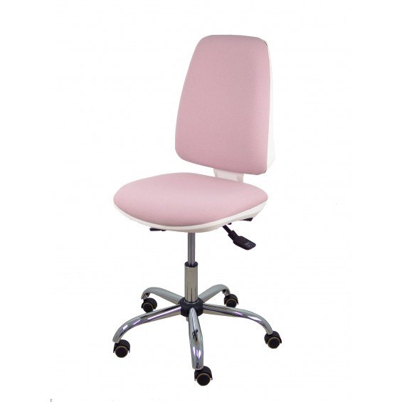 PIQUERAS Y CRESPO Modelo Elche blanca - Silla de oficina ergonómica con mecanismo asincro, regulable en altura y ruedas de parqué - Base cromada. Asiento y respaldo tapizados en tejido BALI color rosa palo.