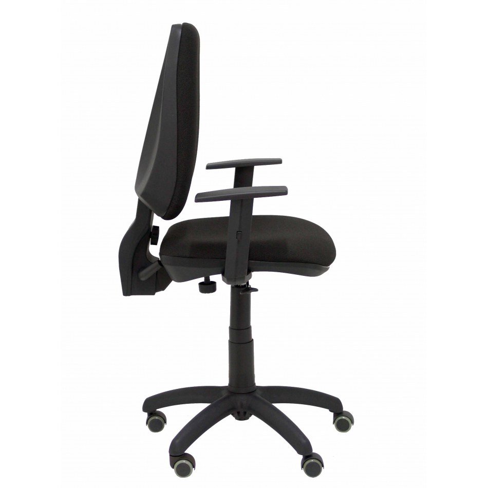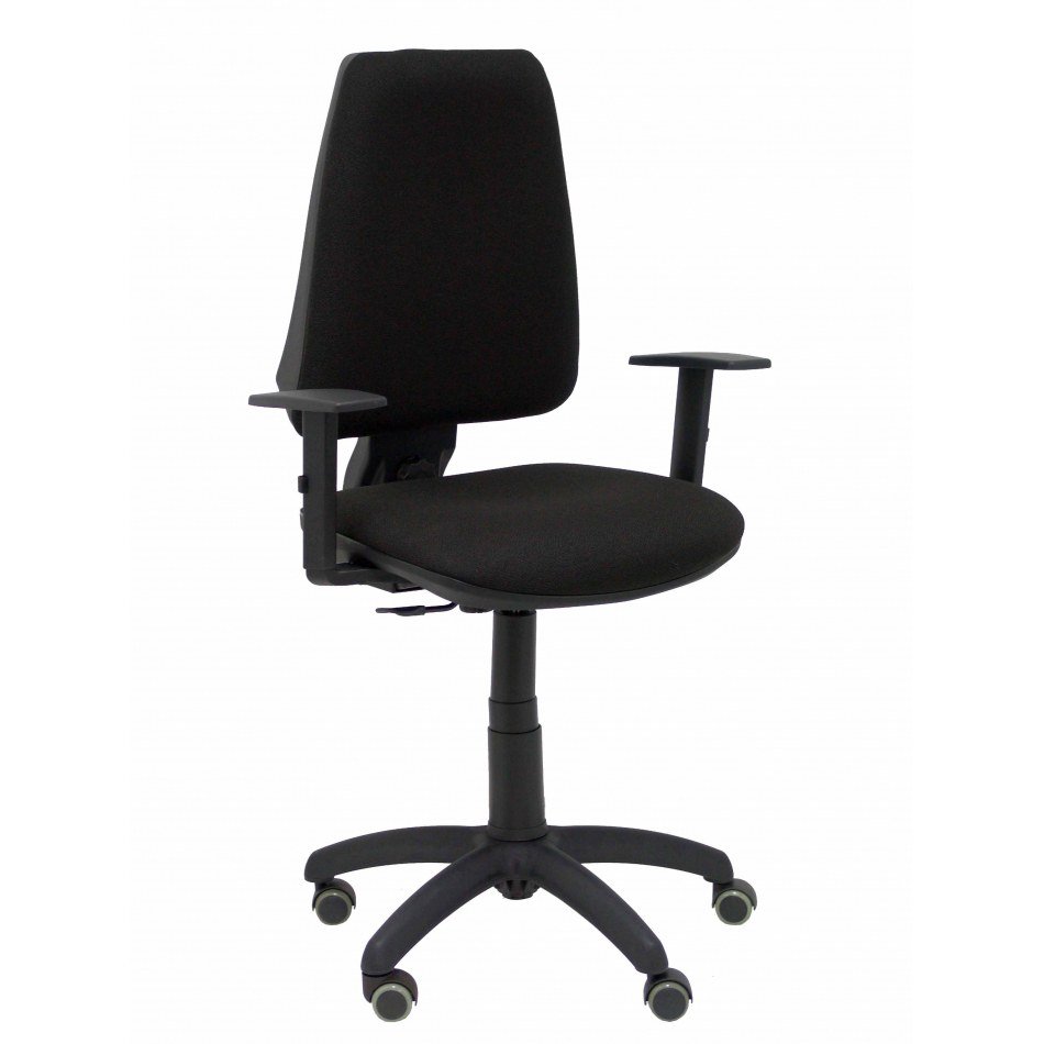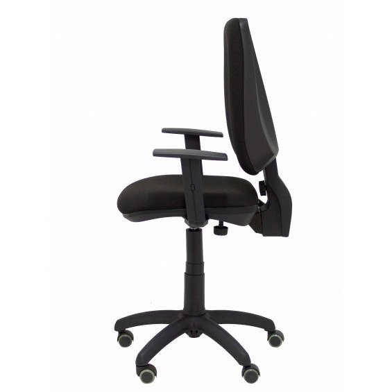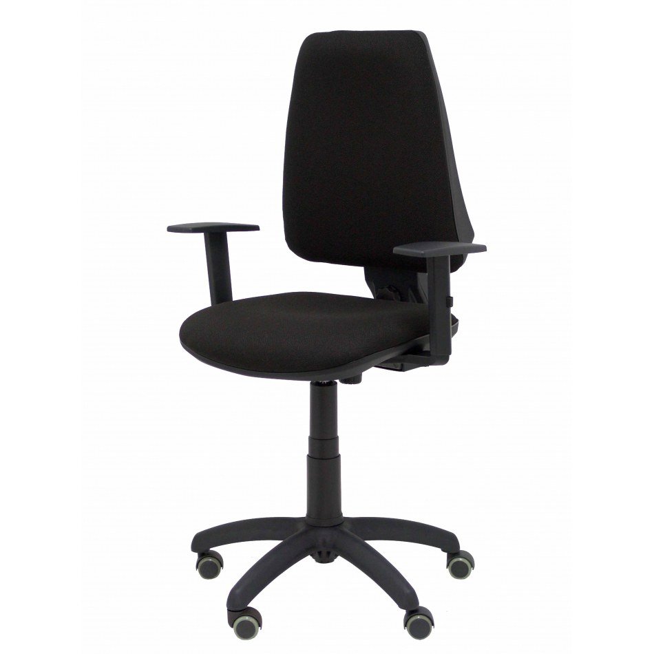 PIQUERAS Y CRESPO Modelo Elche CP - Silla de oficina ergonómica con mecanismo permanente, regulable en altura y ruedas de parqué - Asiento y respaldo tapizados en tejido BALI color negro (BRAZOS REGULABLES EN ALTURA)